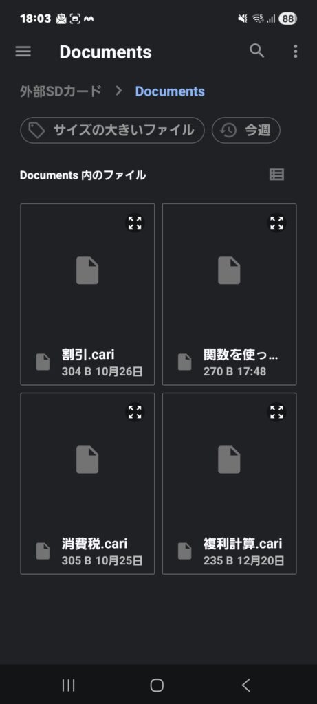 - 保存機能: 計算ページをファイル(.cari形式)として保存