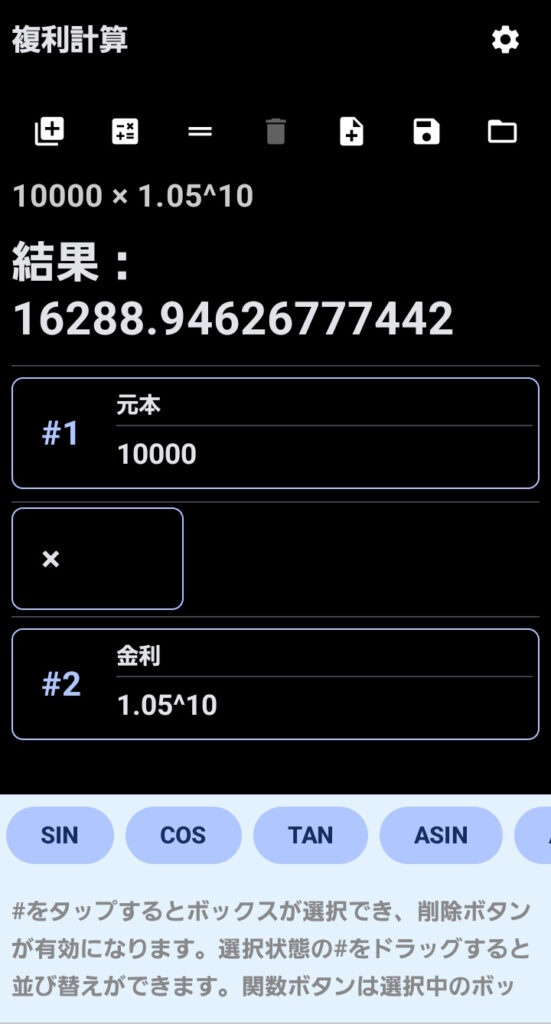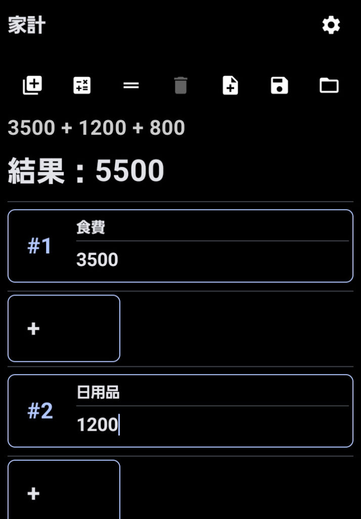 | library_add | 計算ブロック追加 : +ボタンをタップ |